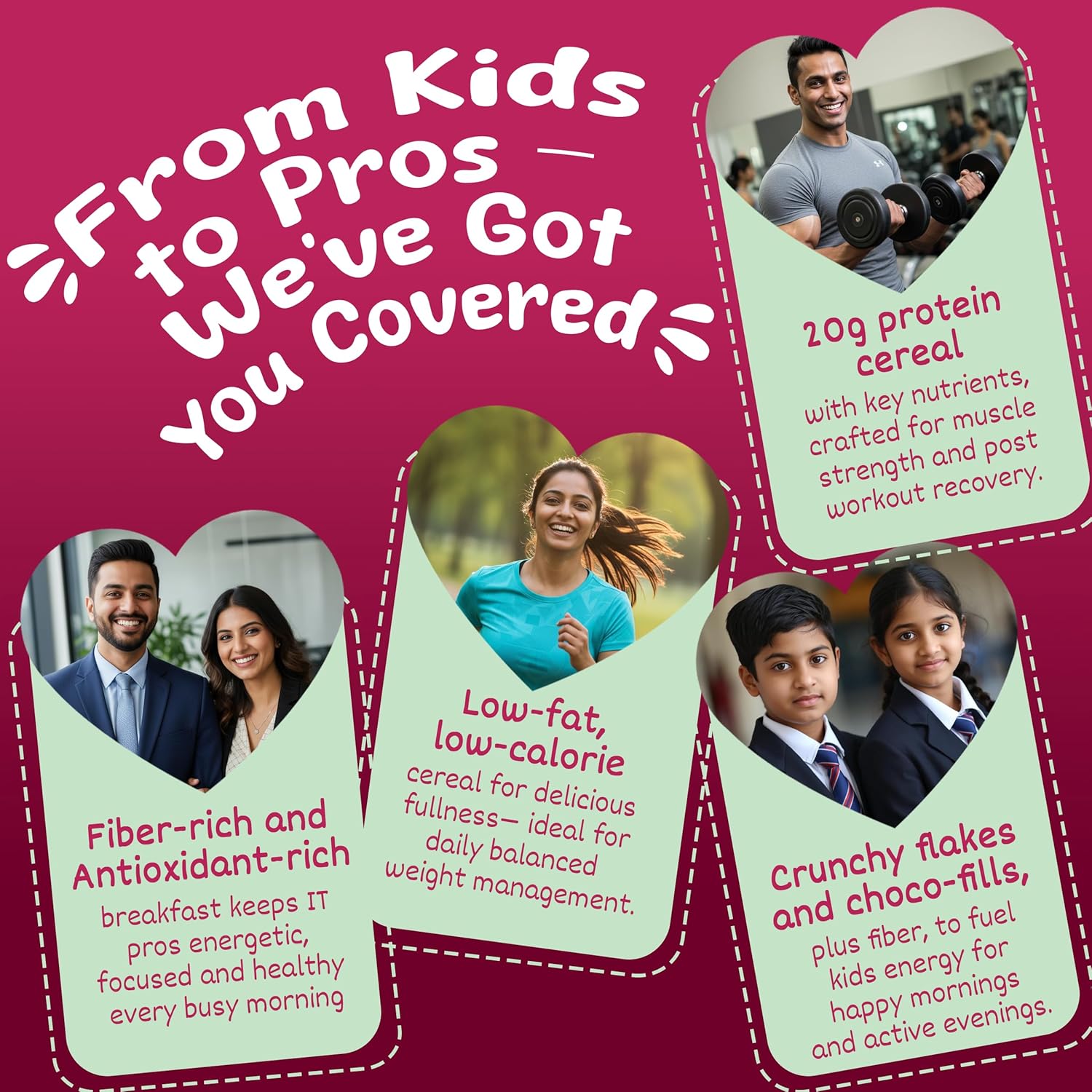 Experience the difference a truly healthy breakfast can make. With its antioxidant-rich, multigrain formula, real fruit and nut add-ons—especially strawberry and cranberry, rich in antioxidants, high fiber content, and gut-friendly prebiotics and probiotics- this cereal supports heart health, digestion, and overall well-being. Enjoy pure, wholesome goodness and fuel your day with the best nature has to offer.