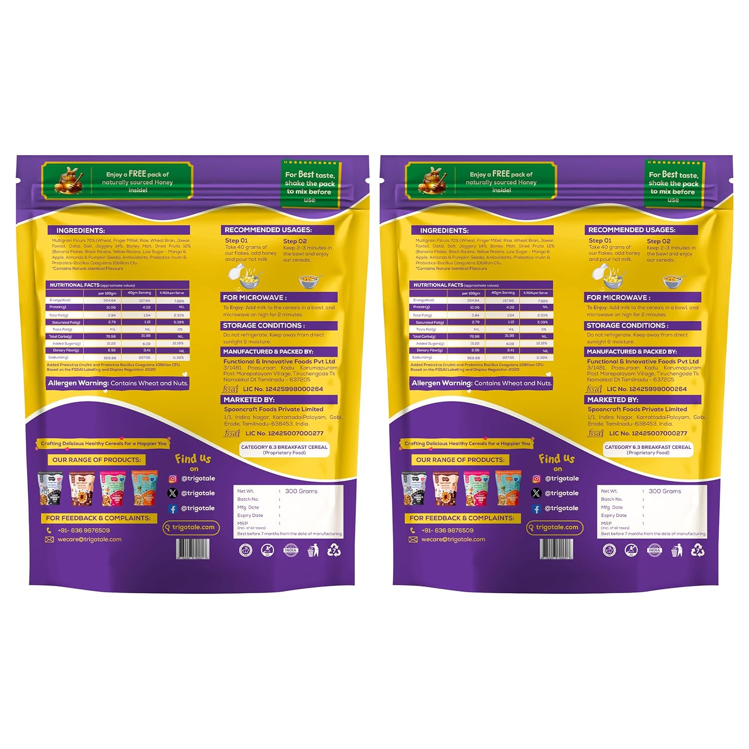 Powered by prebiotic inulin and probiotic Bacillus Coagulans (10 billion CFU), this cereal supports gut flora balance, improved digestion, stronger immunity, and better nutrient absorption. It’s not just a cereal—it’s a functional food that acts as a daily digestive booster.