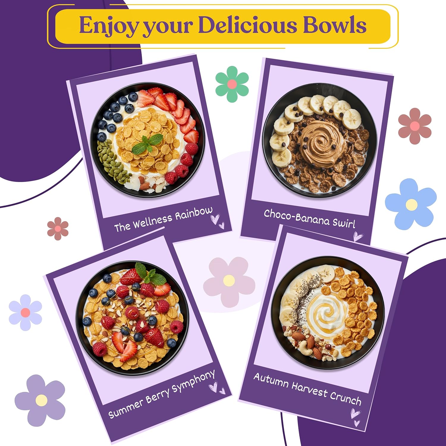 Skip synthetic ingredients and indulge in real fruits and nuts like banana flakes, raisins, mango, apple, almonds, and pumpkin seeds—packed with antioxidants, phytonutrients, protein, healthy fats, and crunchy, chewy, crispy textures. Perfect for those who love clean eating and a nutritious breakfast.